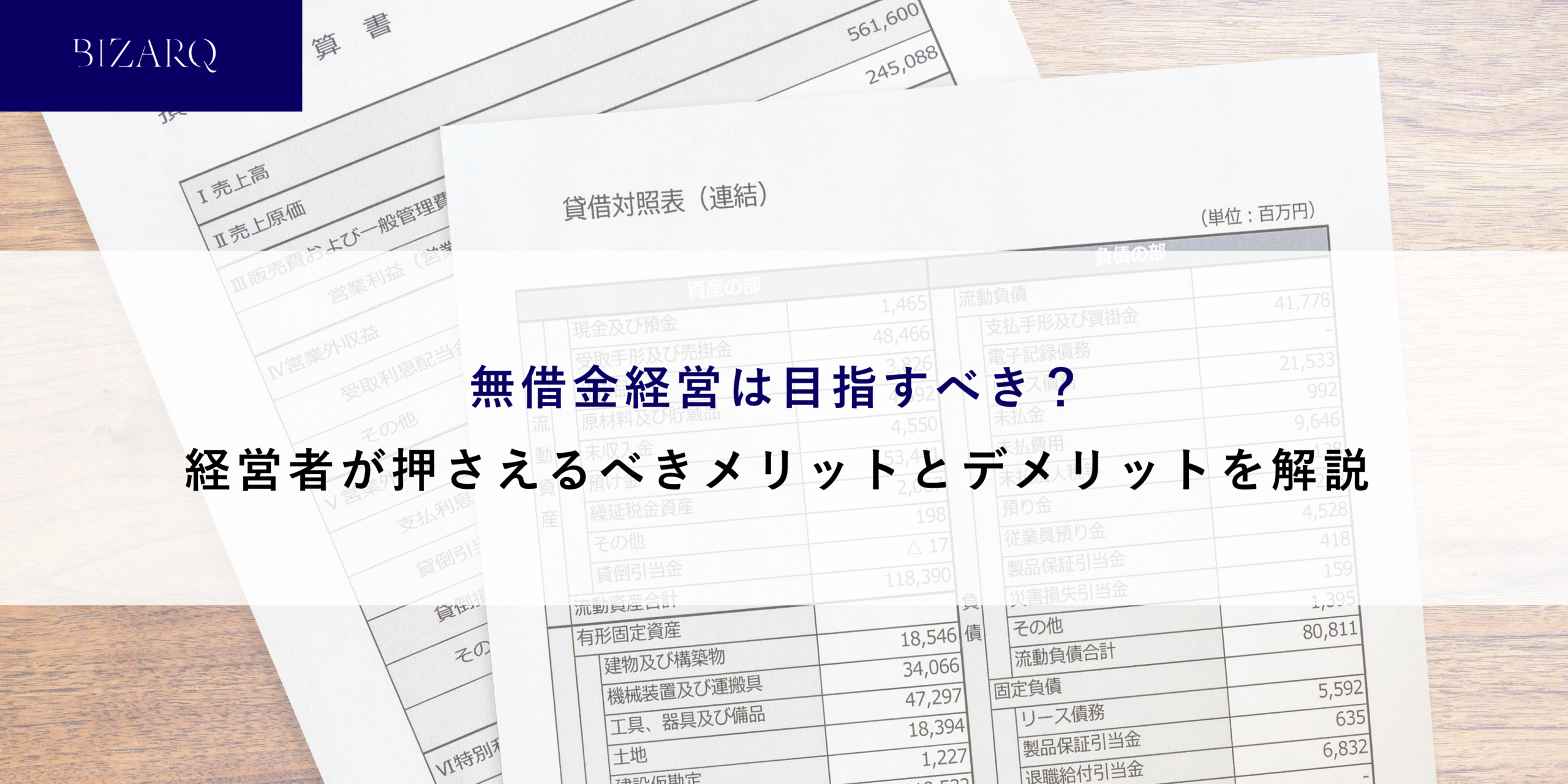 無借金経営とは貸借対照表に利子の付いた負債が一切存在しない状態で経営することです。